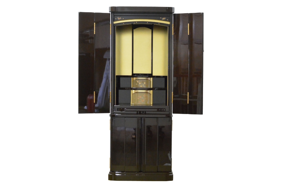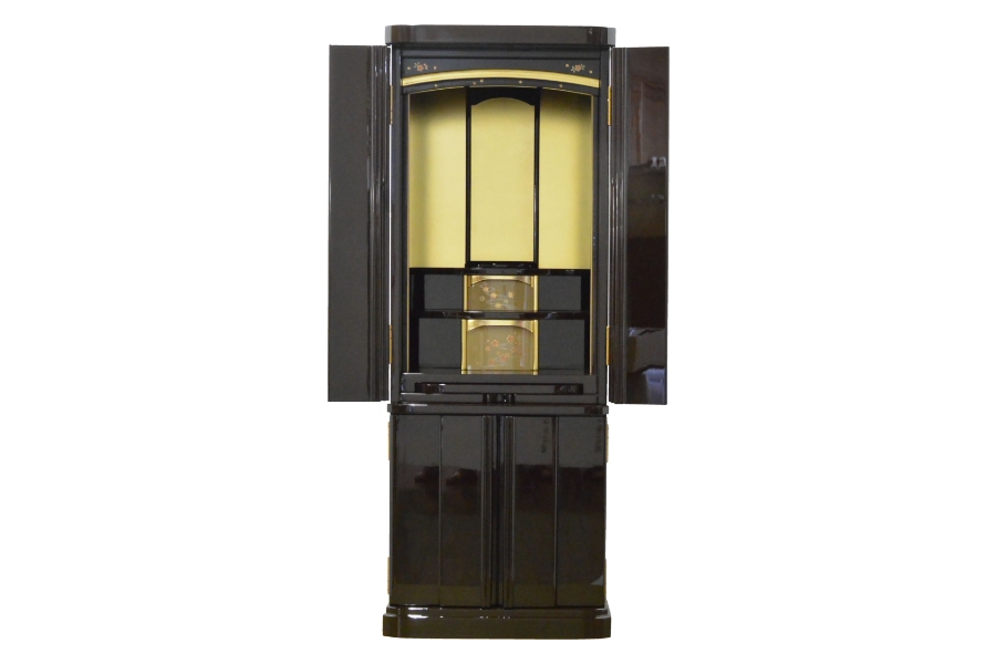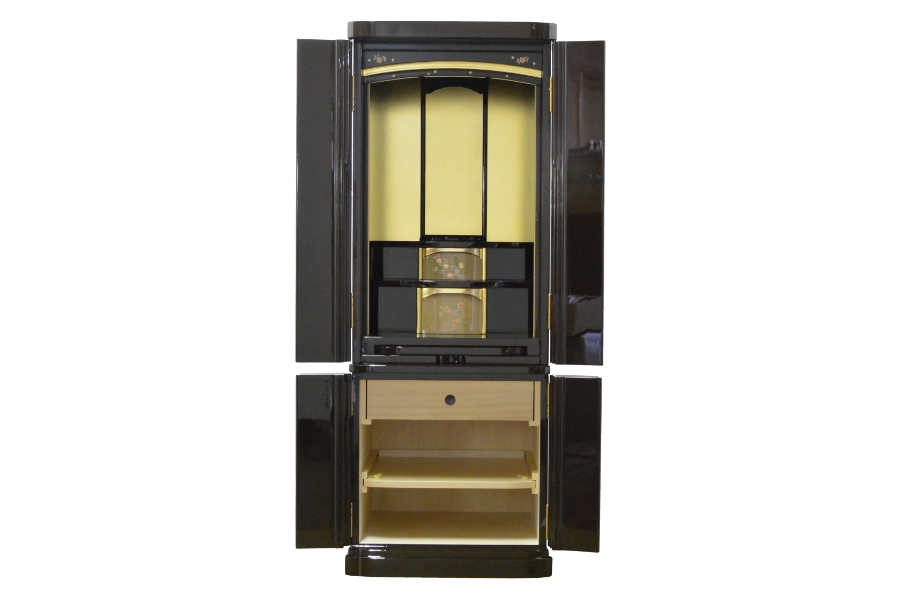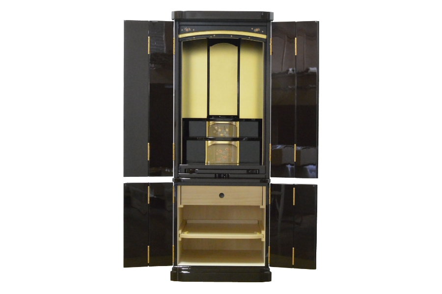伝統的な塗り・金箔押し・蒔絵の技法を使用した和風家具調仏壇です。川連漆器で有名な秋田県で製造しています。